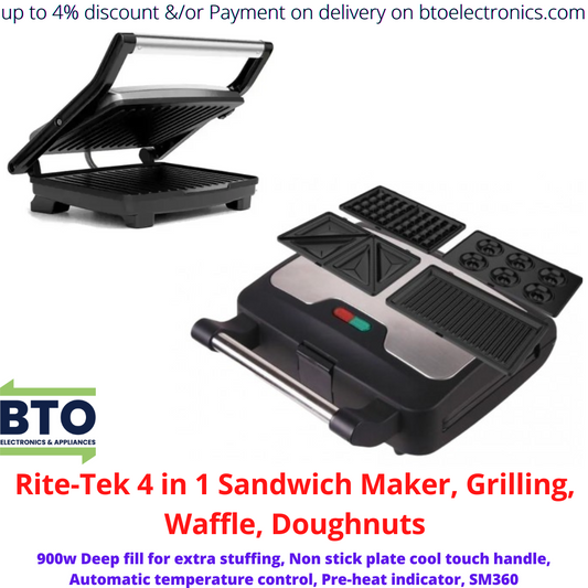 Rite-Tek 4 IN 1 Sandwich Maker, Grilling, Waffle, Doughnuts, 900W