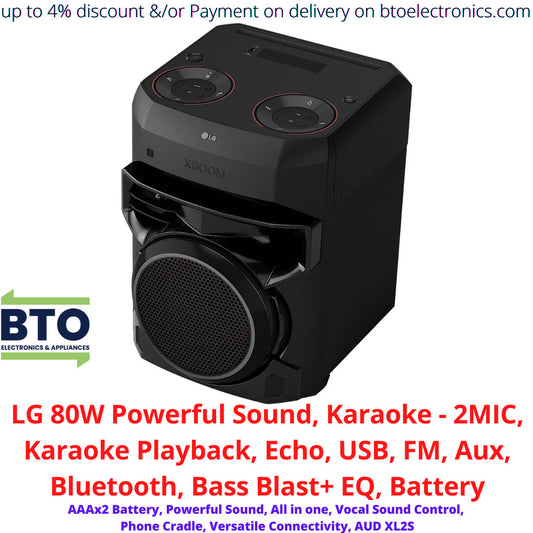 LG 80W Powerful Sound, Karaoke-2MIC, Karaoke Playback, Echo, Usb, Aux, Fm, Bluetooth