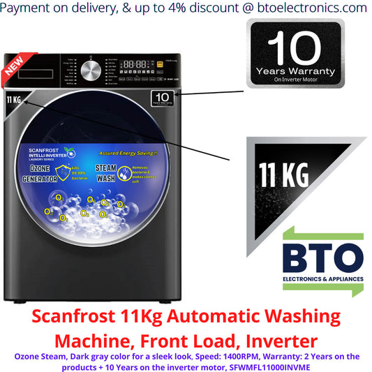Scanfrost 11KG Automatic Front Load Washing Machine, Inverter