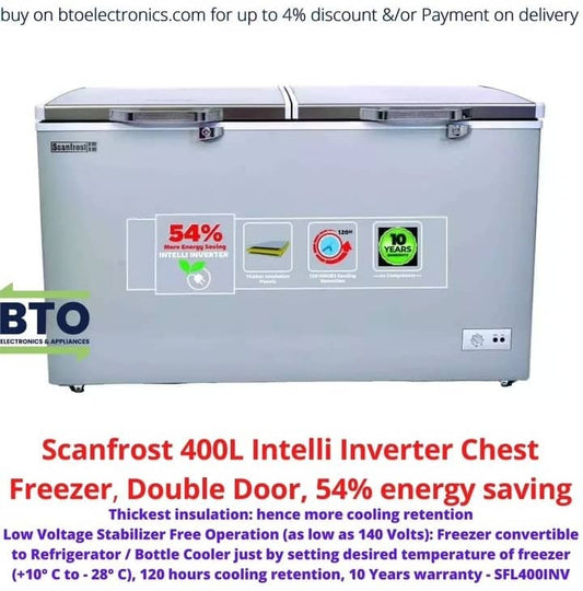 Scanfrost 400L Intelli Inverter Chest Freezer Double Door, 54% Energy Saving