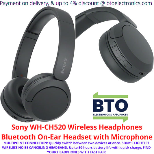 Sony WH-CH520 Wireless Headphones Bluetooth On-Ear Headset with Microphone