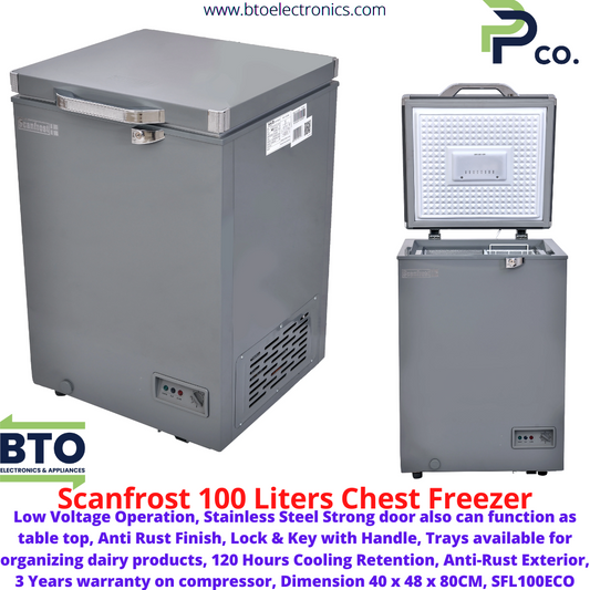 Scanfrost 100L Chest Freezer, Inox Finish, Eco Friendly